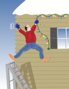 Each holiday season we see almost 15,000 holiday decor related injuries across America. Most homeowners aren’t taking the proper safety precautions while working with or near electrical equipment, and don’t even get me started on ladder safety.